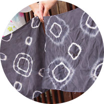 絞り染め技法でひとりひとり異なる柄模様を染め上げることができるのも魅力。
